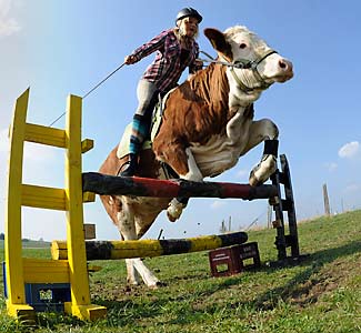 A German teenager whose parents wouldn't buy her a horse didn't let that dash her dreams of show-jumping. Regina Mayer, 15, just saddled up one of the dairy cows on her family's farm and trained Luna to jump.